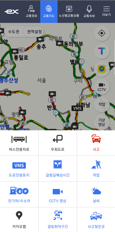 CCTV를 가장 쉽게 확인하기 위해서는 "고속도로 교통정보" 앱을 설치하는 것이 우선입니다.