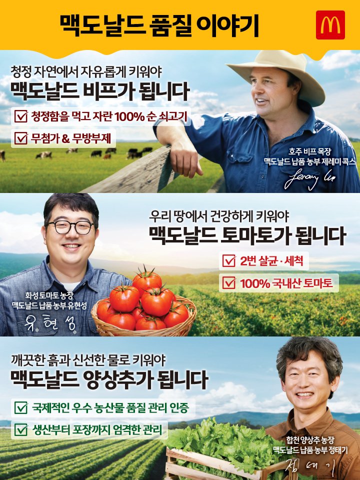 신선한 식재료 공급을 위한 맥도날드의 노력도 이렇게 광고하는군요.