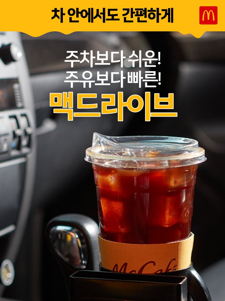 주차의 번거로움도 없애고 차에서 귀찮게 안 내려도 되면서 커피를 간편하게 얻을 수 있는 맥드라이브를 자주 이용해 달랍니다.