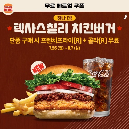 버거킹 행사에서 빠지지 않는 무료 세트업 쿠폰입니다. 텍사스칠리 와퍼와 텍사스칠리 치킨버거는 단품 가격에 세트로 먹을 수 있습니다. 어떻게?