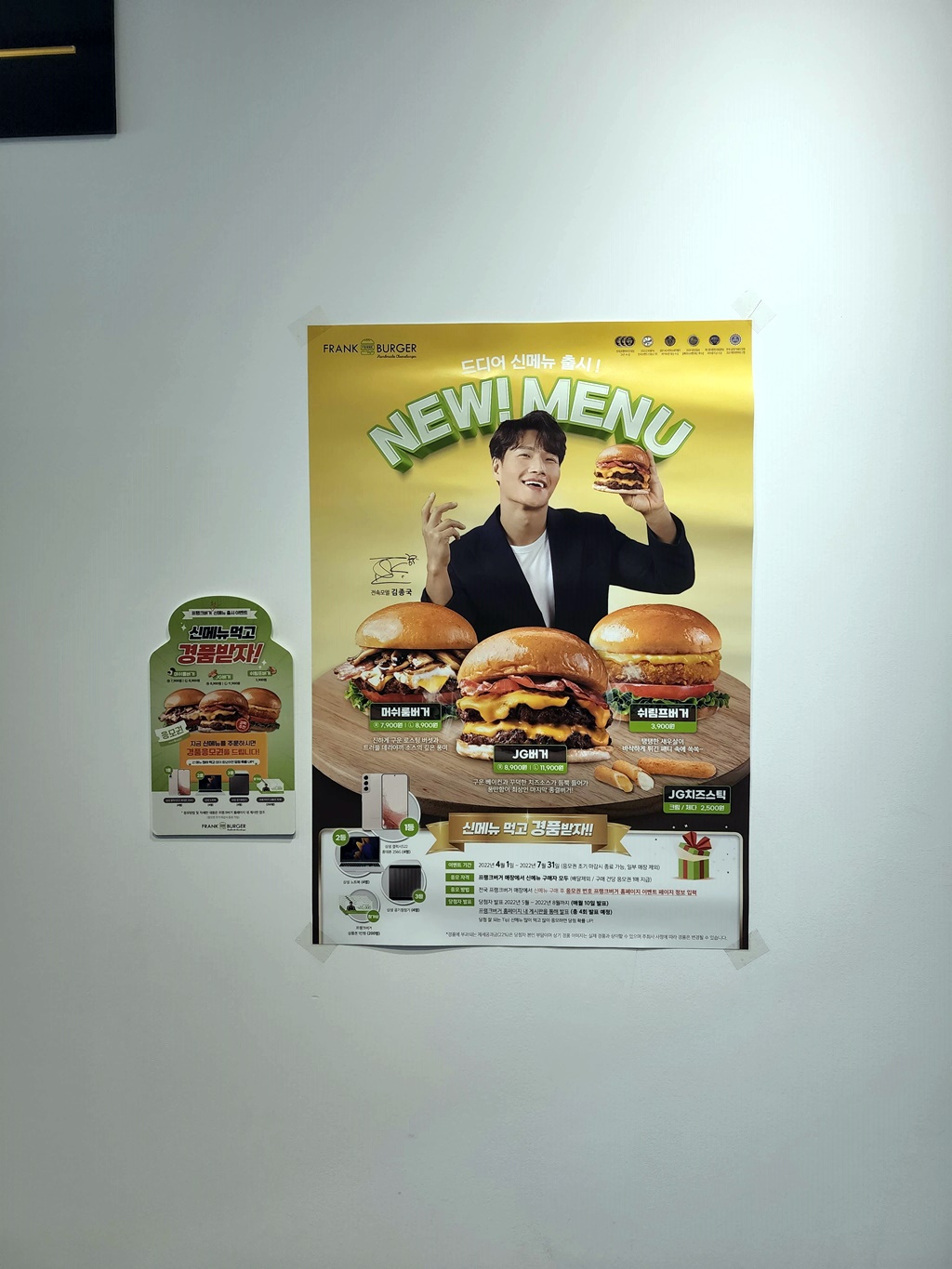 프랭크버거의 모델은 원래 태권도 묘기를 보여주면서도 노래를 잘 하는 나태주였는데, 김종국으로 바뀐지 좀 되었다. 라면도 안 먹는 것으로 알고 있는데, 김종국이 버거는 먹는지 조금 궁금하기는 하다. 프랭크버거는 대형 프랜차이즈는 아니기 때문에 매장 사이즈가 그리 크지 않은 편이다.