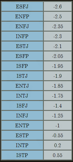 이 성격 결과는 16개의 유형으로 분류가 됩니다. 4자리의 알파벳으로 구성된 결과가 나오고, 각각의 자리에 들어가는 종류가 2종류입니다. 그래서 2*2*2*2=16 이렇게 되니, 총 16개 유형이 되는 것이죠. (초등학교 때 배우는 경우의 수 문제입니다)